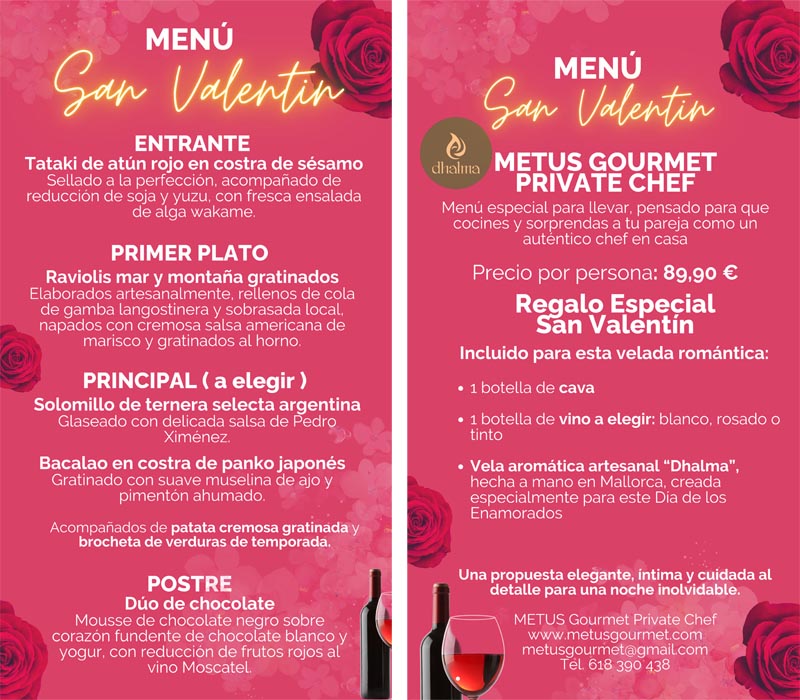 A més, aquest menú inclou regals especials per crear un ambient inoblidable: