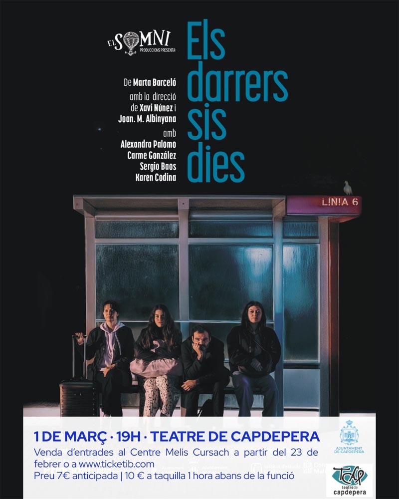 El proper diumenge,1 de març, està programada l’obra de teatre El darrer sis dies al Teatre de Capdepera.