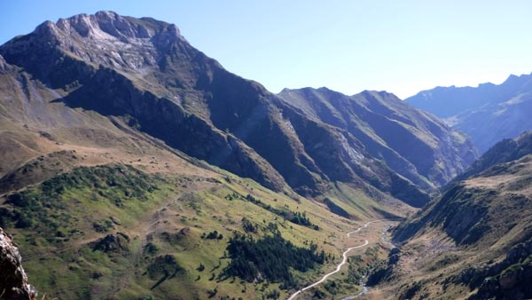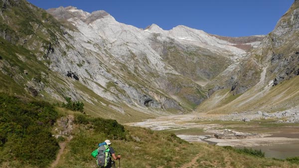 Tanta sort que el dia anterior va ser suau. El tram de la ruta que voreja el Vignemale és prou completa. Segons la guia la sortida del refugi és una mica confusa, així i tot no ens representà cap dificultat seguint les senyals del GR, per bé que travesses la carretera un parell de vegades fins que enfila el vall d’Ossoue. Primer amb una pujada, fins la cabana de Lourdes i el Barrage d’Ossoue. Aquest tram, fins una presa, no és gaire dificultós: llarg però sense grans desnivells.