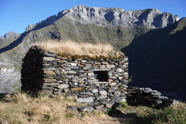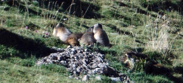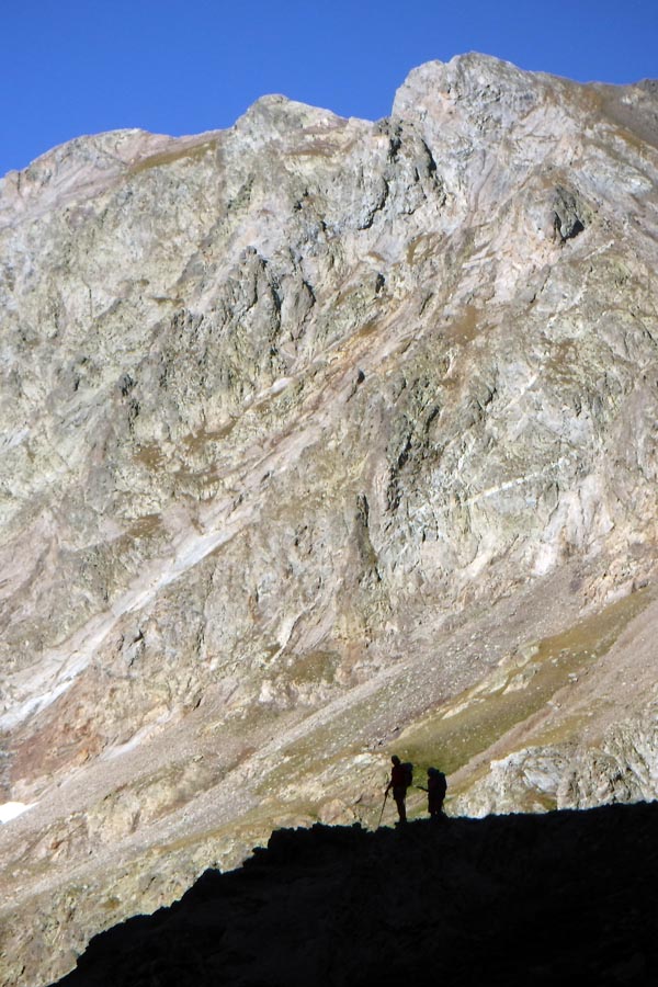 En tot moment teníem al davant el massís del Vigneamale. Així que amb bones vistes ens aturàrem a fer un mos i xino-xano arribàrem al fons de la vall (presa) on iniciàrem una altra pujada. A l’inici de l’ascens trobàrem a l’amic gaditano, que encara anava més poc a poc que nosaltres (que ja és dir!). La pujada resultà ben llarga i entretinguda, certament el lloc és preciós, però les costes semblaven inacabables. Cada revolt del sender semblava que arribàrem a dalt i descobríem un nou tram de pujada. Cada un seguí el seu ritme, fins que poc abans de les coves de Russell, ens aturàrem a dinar a un costat del camí.