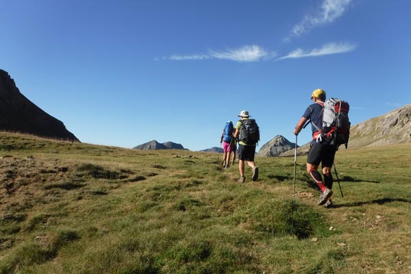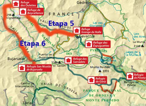De bon matí sortírem a els valencians, i iniciàrem la pujada al Puerto de los Mulos (2.591m) fent uns 400 metres de desnivell (gairebé el total de l’etapa). El camí fa moltes ziga-zagues i guanya alçada ràpidament. Des del coll comença una baixada pel vall d’Ara, des del naixement de l’únic riu verge del Pirineu fins Bujaruelo.
