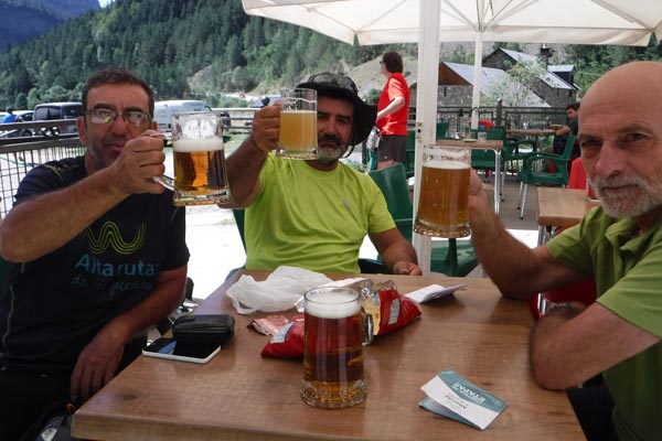 S’ens fa una mica pesat (feia prou calor), però realment avançàvem aviat, així que a mig dia érem al refugi. Amb alegria tornàvem a travessar el pont romà, i directes cap el bar de refugi per a fer una bona cervesa , pegar un bany al riu (teníem uns vals per les dutxes del càmping, però ens estimàrem més el riu) i dinar allà mateix, amb els companys valencians.