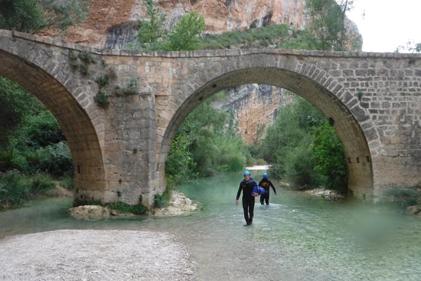 A Alquèzar ens vam allotjar al refugi i de bon matí (7,30 h) vam partir cap a la zona dels abrigos de de Mallata, baixant per un caminoi cap el llit del rio Vero. L’idea era sortir molt prest per trobar poca gent i arribar d’hora, abans que tancassin la botiga on llogàrem els neoprens.