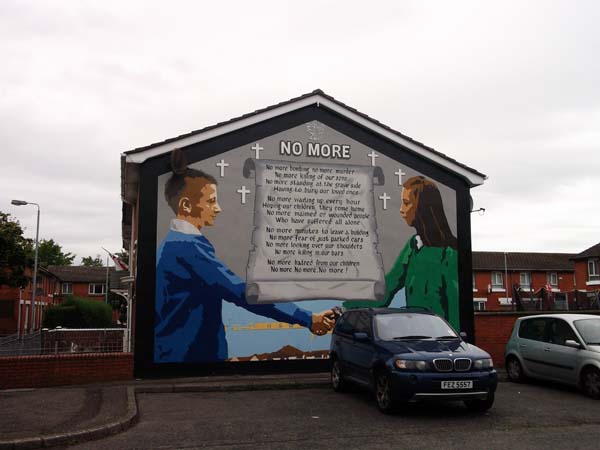 A les barriades republicanes, els murals han esdevingut més pacífics, desapareixent els mentre a les barriades unionistes, es segueixen conservant murals dels grups paramilitars protestants, que no acaben de veuré clar que la pau sigui el camí.