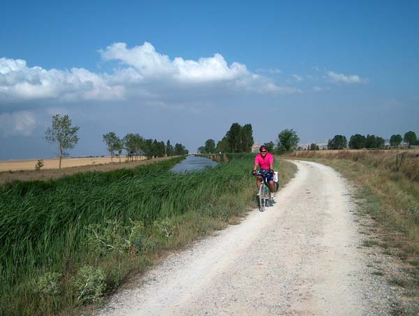 Cap a les I6’30 reanudam la marxa. El pròxim punt d’aturada és Itero de la Vega, on feim un cafè, un te amb gel, un suc… Un client del bar, amb aspecte una mica estrafolari, s’alegra molt quan ens sent parlar, perquè diu que va fer el servei militar a Eivissa i va aprendre moltes paraules en la nostra llengua. Ja ens trobam a la província de Palència i el calor és la nota dominant. Procuram untar-nos de crema protectora.