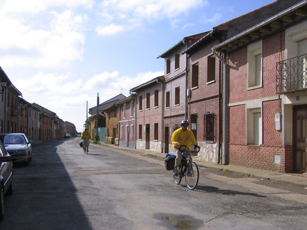 A les 8’00 deixam Sahagún, una població de la qual, tot sigui dit, no hem vist res. Avui em toca a mi: a poc més de mig quilòmetre de la sortida, me’n tem que he deixat el bidó, i ja se sap que un ciclista no pot anar sense aigua. Pec una estirada a cercar-lo i em faig una propina d’un quilòmetre. Vaig sobrat, jo. El dia s’ha alçat prometedor, clar com un llum, radiant diria. Però a mesura que anam pedalant, el vent de cara, altra vegada, es fa insistent i la sensació de fred és molt alta. El camí discorre paral·lel a la carretera i qui més qui manco va per on vol. En Paco i jo seguim fidels al camí.