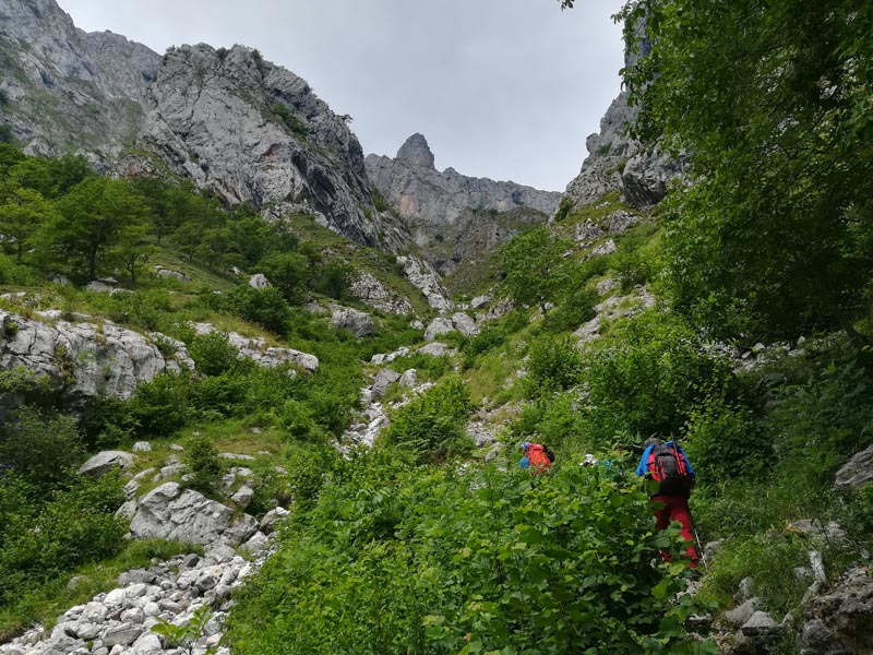 Just passat el pont de Bolín agafàrem un desviament per un caminoi molt empinat que enfilava una gran canal.