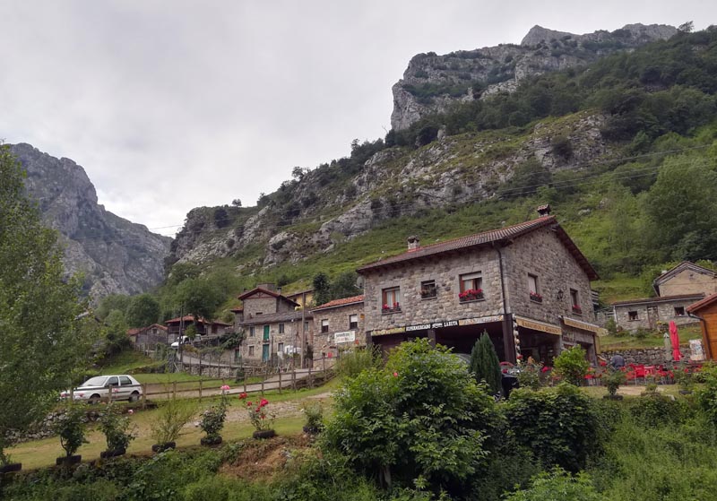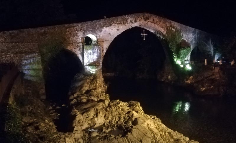 Arribats a l’aeroport d’Oviedo, i llogat el cotxe, partírem cap a Cangas d’Onís. De camí ja notàvem la diferència amb el temps de Mallorca: plovia i feia fred. A Cangas ens hostatjàrem en el centre del poble així que, malgrat el plugim, sortírem a sopar i fer un volt pel centre visitant el pont i el barri antic.