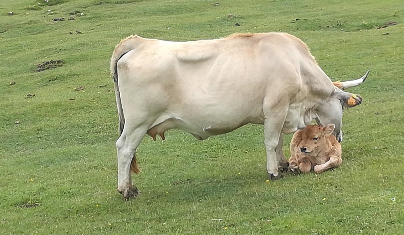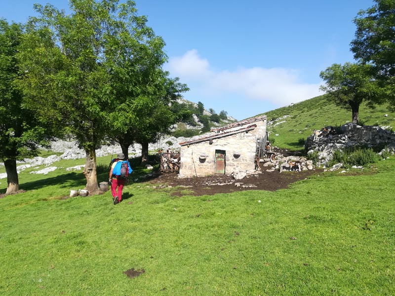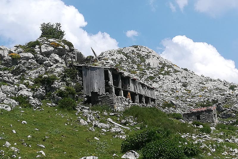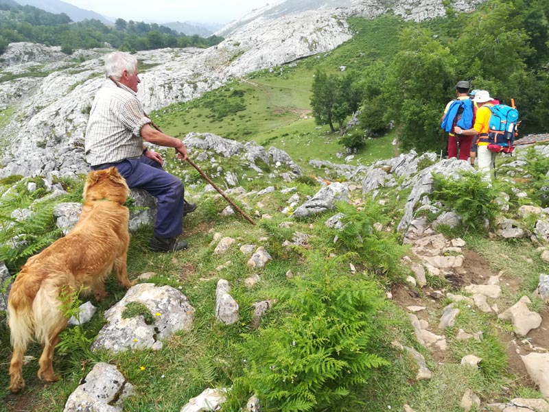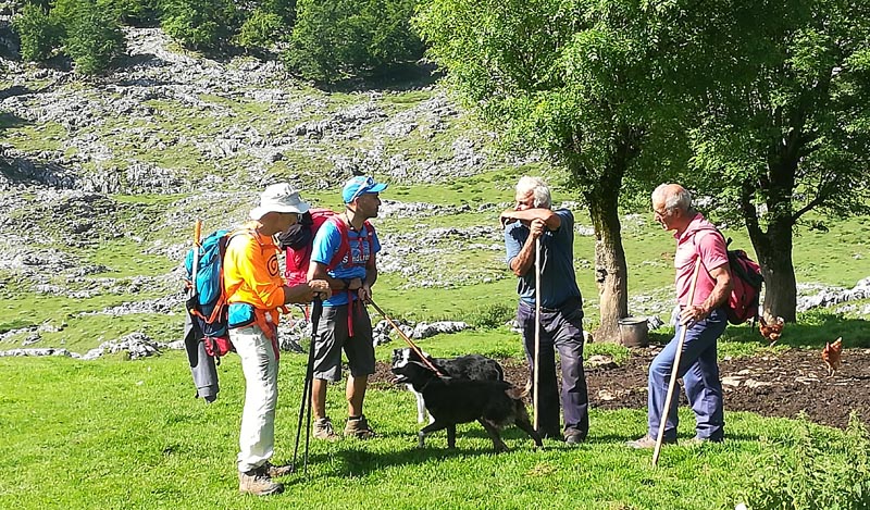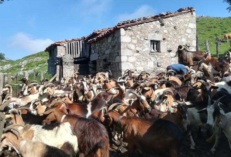 A la majada de Bovies uns pastors munyien les cabres a un corral. Aturàrem a xerrar una bona estona. Amb la llet aquí se fa el formatge de zona: el gamoneu . Potser aquests pastors de muntanya són els darrers de Picos d’Europa i és un goig xerrar amb ells.