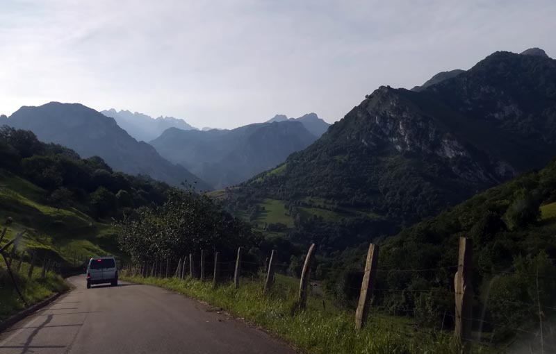 Des de Cangas sortírem prest cap ( després d’un dejuni ràpid) en direcció a Caín (Lleó) per començar la ruta. La carretera principal estava “tallada per obres” i agafàrem un desviament per poblets de muntanya. Una ruta que resultà preciosa, amb unes vistes immillorables. Anàvem per la zona de “Los Beyos” per una carretera estreta i costeruda passant per Pen, Villaverde, Sant Juan de Ladeña… tots al Parc Natural de Pengara.