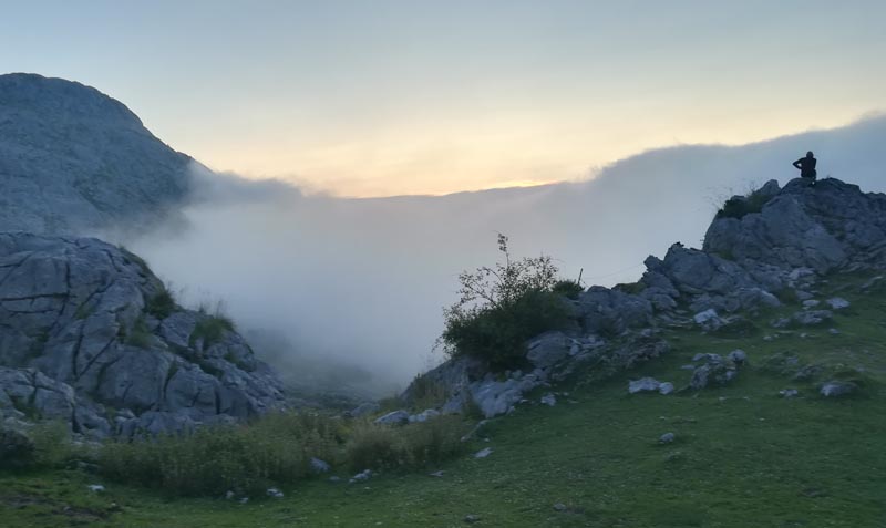 Mentre esperàvem la posta de sol, gaudíem amb el joc dels núvols que pujaven des de la vall.