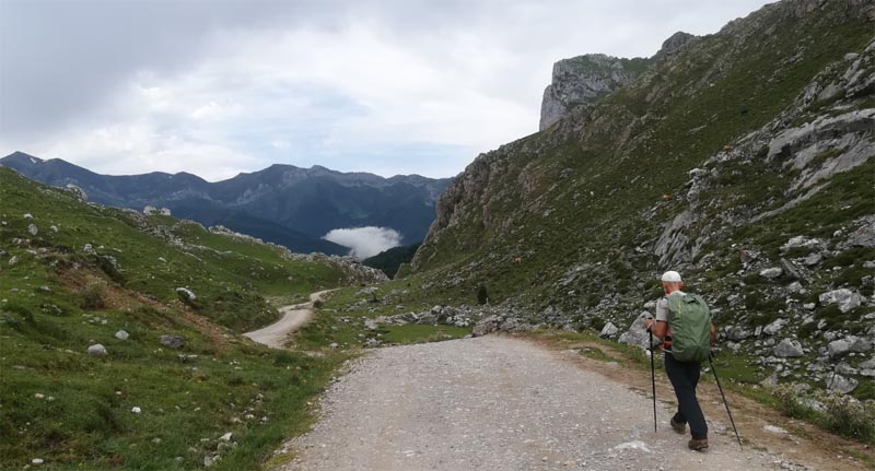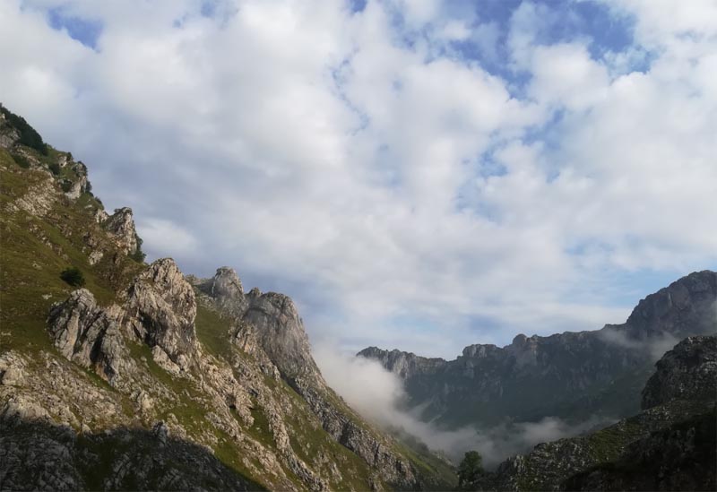 Passat el refugi de Álivas hi trobàrem una bifurcació, nosaltres seguírem la direcció cap a Fuente De. Superat un portell el camí canvia, es torna més estret, entrant en una zona boscosa preciosa amb alguna que altra pujada i baixada pronunciada, a la vessant del Pico Valdecoro. La ruta es tanca de nou a Fuente De, just a l’entrada al telefèric.