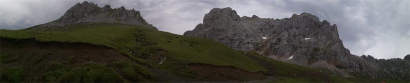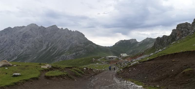 Primerament el camí és planer fins una cruïlla, on afortunadament deixa de ploure, i des d’aquí comença a baixar suaument fins el Chalet Real, passant per la font de Resalau. Així que ens llevaren la roba d’abric i gaudírem de la baixada ja que, malgrat el camí és fàcil, el paisatge és el típic d’alta muntanya, amb praderies i cims vorejant amples valls.