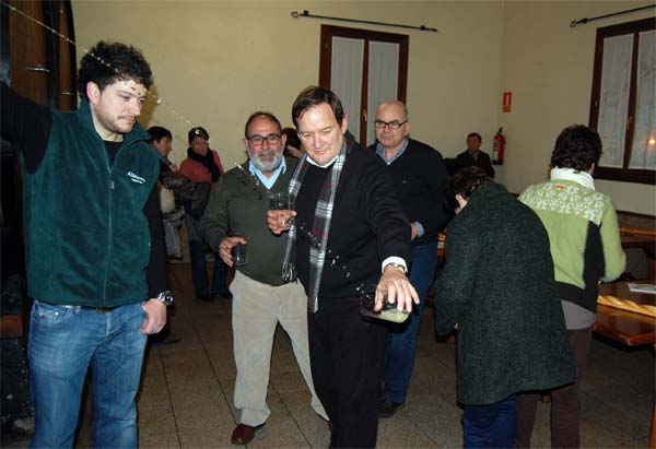Aquesta vetllada la passàrem a la sagardotegia Alorrenea, a Astigarraga, a dues passes de Sant Sebastià.Una sagardotegia és una sidreria. El nord d’Espanya és la zona de la península que més sidra produeix i consumeix, i Guipúscoa no n’és una excepció. Antigament, la gent que volia comprar sidra, anava a provar-la i, per tal d’aguantar el cop, solia dur alguna cosa per menjar. Avui ja no cal, perquè les sidreries, a més de sidra, han eixamplat el seu servei fins a convertir-se en quelcom semblant a restaurants, amb un menú que sol ser el mateix a tots els establiments: truita de bacallà, bacallà fregit amb pebres, costella de bou, formatge Idiazábal amb codonyat i nous… i sidra a voler. I això és el que menjàrem i beguérem nosaltres, fins a tocar-nos-ho amb el dit, com se sol dir vulgarment. Fins que en volguérem. N’hi hagué que feren molts de viatges a les kupelas de la casa, les botes enormes de les quals, al crit de txotx!, anàrem tastant directament el suc fermentat de la poma, el qual, tot sigui dit, no passa del 8% de volum alcohòlic. A alguns se’ls desfermaren les ganes de cantar i deixaren el pavelló de Mallorca a una alçada considerable. Quina soparàs! Senzillament insuperable. No quedaven forces per res més i, qui més qui manco, se n’anà a recuperar forces.