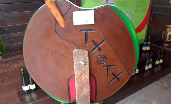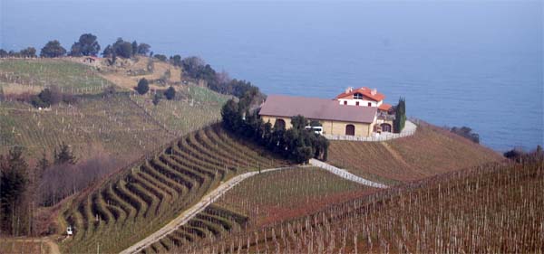 Encara mig entabanats per tot d’aromes i sabors, emprenem el camí cap a Getaria, concretament a les bodegues Txomín Etxaniz, una de les que s’enquadren dins la denominació d’origen Getariako Txakolina, que és la pròpia d’aquesta zona, la més petita de les tres que elaboren xacolí.. Guetaria es troba a no són gaire més de 20 km des de Sant Sebastià, cap a l’oest. L’arribada és espectacular, amb les 35 quarterades de ceps emparrats, caient damunt la mar, i el casal de la bodega al fons. Un dels propietaris del celler ens acull i ens guia la visita per les modernes instal·lacions de la casa, amb cups per a prop de mig milió de litres de vi, elaborats a partir de les varietats Hondarrabi Zuri (90%), blanc, i Hondarrabi Beltza (10%), negre. El resultat final és un vi influït pel clima atlàntic, de color groc-verd, un puntet efervescent, àcid i poc alcohòlic (entre un 9% i un 11.5%). El xacolí és un vi que se serveix preferentment acompanyant l’aperitiu i que es beu el mateix any que s’embotella, ja que no permet emmagatzemaments llargs. Nosaltres en vam beure a voler, i a la casa, per tal de “fer paret”, ens serviren anxoves de Getaria elaborades a la mateixa bodega, indescriptibles, que fan només per als tasts de vi. Una delicadesa.