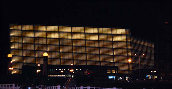 Després d’un parèntesi d’imprescindible descans, encara ens esperava una de les grans experiències del viatge. Havíem de sopar a la Peña Hípica Donostiarra, una de les moltes entitats que acullen una societat gastronòmica. Alguns ens hi atansàrem a peu, vorejant el Bidasoa, ja nit feta, passejant per devora alguns dels emblemes arquitectònics del romanticisme de la capital, però amb el Kursal imposant la seva estructura il·luminada, ja a tocar la mar: l’auditori i palau de congressos projectat per Rafael Moneo no deixa ningú indiferent.