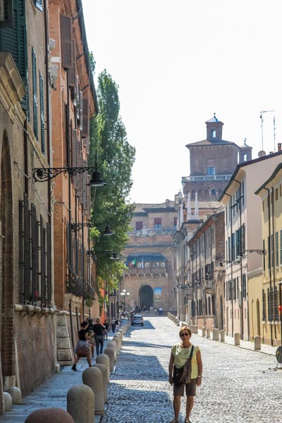 El Corso Ercole I d’Este “immortalitzada per Giosue Carducci i Gabriele d’Annunzio, és tan coneguda dels enamorats de l’art i la poesia del mon sencer, que qualsevulla descripció que d’ella se’n fes resultaria, per força, supèrflua. Som, com és sabut, en el cor mateix d’aquesta part septentrional de la ciutat que s’afegí durant el Renaixement a l’estret burg medieval i per això mateix s’anomena Addizione Erculea. Corso Ercole I d’Este, ample, recte com una espasa des del castell a Mura degli Angeli…” Hi cercam la magna domus, la casa dels Finzi-Contini, i no la trobam, i per això mateix ens sembla més real, allà pel canal Panfilio i Mura degli Angeli.