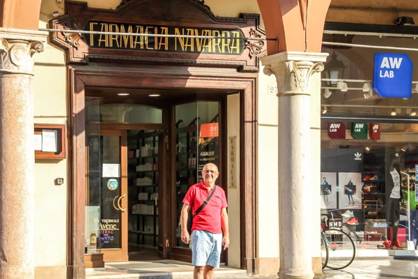 El cafè ha desaparegut, substituït per una franquícia internacional de roba, l’apotecaria encara hi és i no podem evitar l’impuls d’entrar-hi.