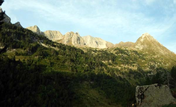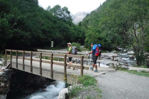 A Benasque arribàrem a l’hora de dinar, cosa que férem amb molta gana i després dels cafès partírem cap el pàrquing des d’on iniciàrem la pujada al refugi d’Estòs ( 15,45h), on passaríem la primera nit. El camí de pujada es troba molt ben senyalitzat coma a GR11. És l’entrada “natural” al Parc Nacional de Possets-Madaleta. La pujada és una preciosa excursió que ben bé val la pena.