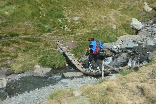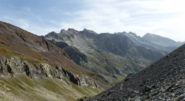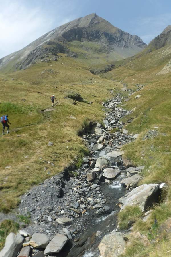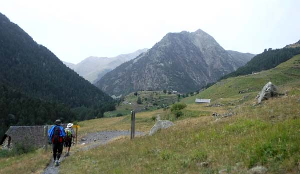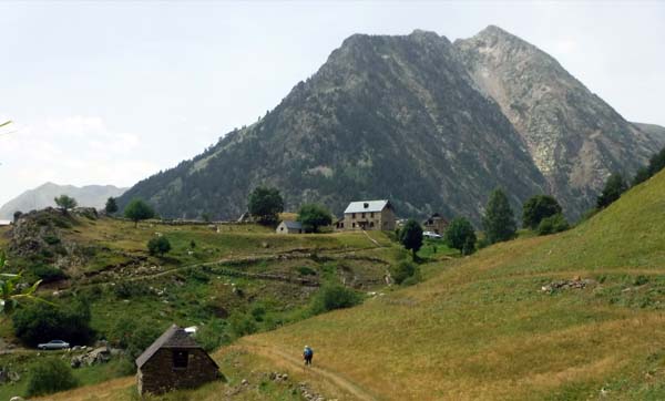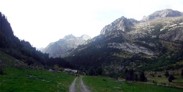 A penes ens faltava una hora de baixada fins el refugi, així que férem el camí xino-xano. El camí baixa gairebé fins tocar el riu, davant teníem l’impressionant vista de la Tuca Llardana o Possets (3369 metres). El camí s’eixampla quan arriba a les primeres cabanes i casetes, poc abans d’arribar al refugi. Les construccions són sòlides, de pedra amb sostres de llosa de pedra.