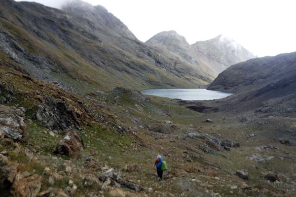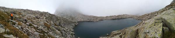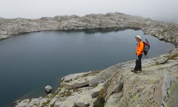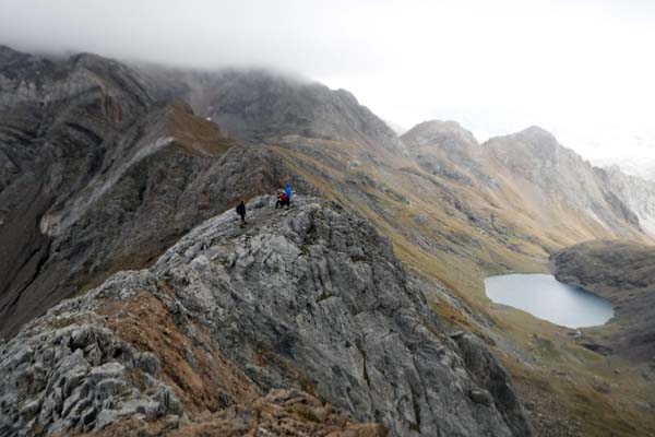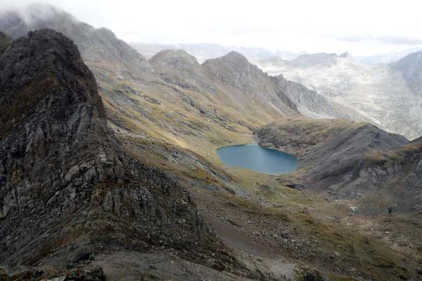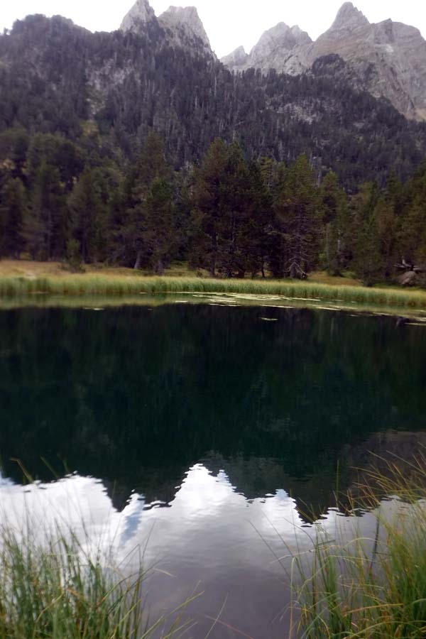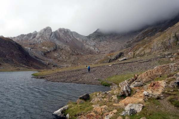 En arribar al riu trobàrem l’Ibón de Grist, preciós, on aturàrem a fer fotos i menjar. La boira ens envoltava. De de l’estany començàrem una bona pujada, això sí ben marcada, que ens durà a l’Ibón de la Plana, que vorejàrem fins el Collado de la Plana.