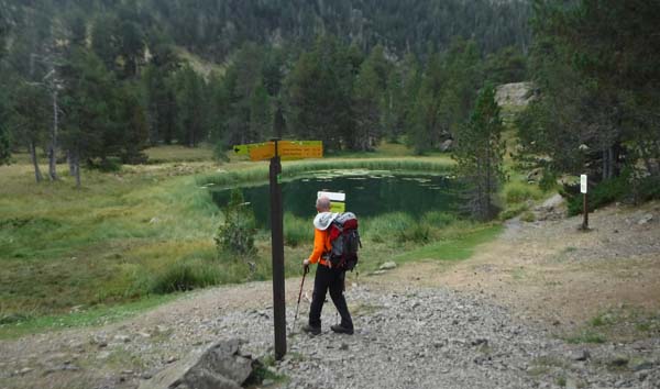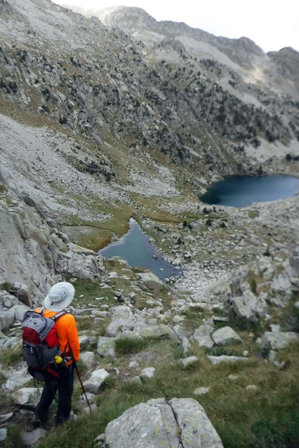 Des de l’estany la baixada resultà prou pronunciada amb molts de revolts fins l’Ibón Chico de Batisielles, on hi trobàrem un creuer de camins. Un indica el refugi d’Estós i l’altre (que seguírem nosaltres) du al camí de baixada al pàrquing. El lloc resultà molt agradós però a penes quedàrem un minut, frissàvem perquè no volíem fer esperar a Toni.