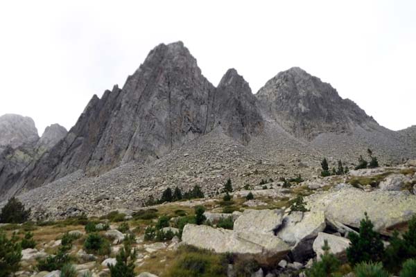 Durant la baixada per la Pleta Llardana passàrem de llis el desviament del camí que puja al Posset (tanmateix hi havia molta boira). A la dreta es veia de forma impressionant l’Agulla de Forcau i el Forcau Alto i, a l’esquerra, els canals de pujada a Possets amb la Tuca de la Canal i la Tuca de la Canal Fonda. No cal dir que el panorama era magnífic.