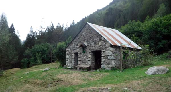 Des del creuer férem una petita baixada fins un riuet (barranc Llardeneta) i vorejàrem la vessant sud del Possets, mantenint l’alçada. Passàrem pel refugi lliure de Llardaneta fins arribar al riu dels Ibons. Aquest tram de camí resultà agradós, amb petites pujades i baixades.