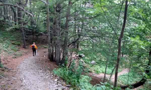 La baixada al camí resultà un passeig agradós (però amb molta pendent) sota els faigs. El camí ens semblà una autopista, així que baixàrem a molt bon ritme i en mitja hora eren a lloc (des de la Font de Canera al pàrquing marcava 45 minuts).