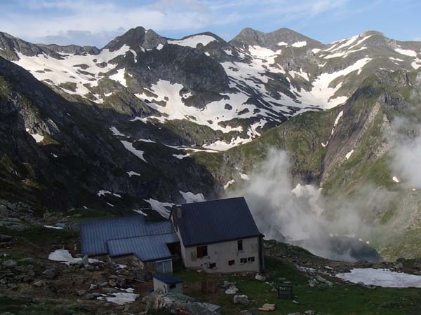 La pujada resultà dura, però com que teníem ganes d’arribar la férem d’una tirada. El refugi dels Estagnous es va construir l’any 1912 i es troba a 2246 metres, i constitueix un preciós mirador natural, que ofereix unes panoràmiques úniques. Aquest refugi s’usa per pujar al mont Valièr. Aquesta muntanya, de 2838 m, es troba un poc allunyada de la resta i permet una vista molt completa del Pirineu Central.