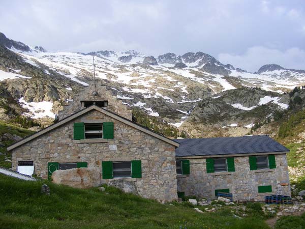 En arribar al Portillón tornàrem a mirar el cim de l’Aneto. Ara ja ens quedaven les darreres glaceres per arribar al camí de terra de pujada. Aviar tot estava ennigulat i amenaçava pluja. Quan ens llevàrem els grampons, ens costà caminar. Frissàrem d’arribar al refugi. De fet, va ser trepitjar el porxo ( 14,50 hores) i caure les primeres gotes. Afortunadament, no començà a ploure de valent i els nostres companys arribaren abans que la tempesta amollàs (15,30 hores). La predicció de pluja només es va endarrerir mitja hora. Ara vindria lo bo: una bona dutxa, estendre la roba banyada (botes i calcetins) i fer una estona de descans, xerrant i prenent unes cerveses, mentre esperàvem el sopar. En aturar de ploure, vàrem fer una volta pels redols (ermita de Santa Maria de les Neus, la vall i el riu) i, quan va ser l’hora, seguérem puntualment en el menjador per a sopar (hi havia gana). La sobretaula, endolcida per uns glopets d’herbes (sembla mentida què hi arriba a cabre, en una petaca de butxaca!), resultà breu : ens n’anàrem anar a dormir prest.
