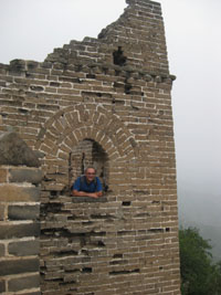 Aquell era un dia gran, per mi. Tocava visitar tot un mite, congriat des de la infantesa: la Gran Murada Xinesa. Decidírem no anar a la zona propera ( i més turística) de Badalin, alguns ja hi havien estat, i optàrem per les zones més allunyades de Simatai i Jingshaling. De fet, faríem una travessia d’un deu quilòmetres, entrant per una zona i sortint per l’altra. La boira tornava a ser present, però teníem la il•lusió que a les muntanyes escamparia. No va ser així. Després de circular per autopistes i carreters amb molt de trànsit, arribàrem a Simatai. Pujàrem amb un telefèric, amb cabines que semblen de jugueta. Després prenguérem un artefacte sobre rails (semblava més una atracció de fira que un tren) que remuntava altres cent metres, i després d’una breu i aspra pujada posàrem els peus a la murada. Realment és tan impressionat com es diu. No decep gens ni mica.