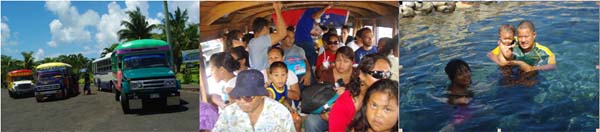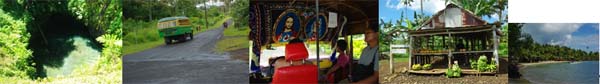 Esmorzem amb la família i després prenem el bus recorrent tota la costa sud-oest. Des de la carretera hi ha desviaments a les platges de Virgin Cove, Salamumu, Matareva, Return to paradise (sí, es diu així). Per la via interior, ocupada per plantacions i amb només un llogaret, tornem a Apia per transbordar a un altre bus que ens portarà fins al moll dels ferris.