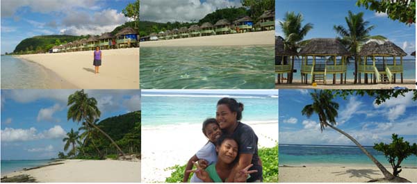El bus va endinsant-se en les diferents poblacions i deixant al personal, això ens permet albirar racons que d’altra manera mai haguéssim vist. Travessem un espès bosc plujós anomenat Uafato, que és reserva natural. A les 19h arribàrem a Lalomanu, una idíl•lica platja, d’aquestes amb palmeres, sorra blanca, aigua translúcida … En la seva riba hi ha diversos complexos de beach-fales i triàrem el de Taufuna. 45T amb sopar i esmorzar. A les 20h se serveix aquest sopar (“oka” que és un bonic macerat, xai, pollastre, mànec, regat amb una vailima).