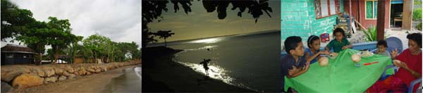 Les fales les regenta una família que ens acull amb gran entrega. Jugàrem amb els seus 5 fills mentre ens preparen el sopar. Degustàrem un cafè samoà, (més fluix que el nostre) i parlàrem del tsunami de 2009. Ens explicaren com van fugir cap a les muntanyes, aquí no hi va haver morts (en Lalomanu 48), i com l’endemà tot estava arrasat i ple de peixos encallats, que els van permetre sobreviure. Mai abans els havia passat alguna cosa així. En els seus annals no hi ha registrat cap tsunami I aquest serà l’últim!