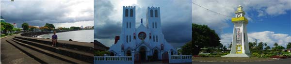 Apia és una ciutat petita, a la riba de la tancada badia de Vaiala. Es troba vorejada d’un agradable passeig marítim on s’hi troba el luxòs hotel Aggie Grey en el què ens vàrem cola, el Monument a Hhon William, missioner que va ser menjat el 1839, la catedral on ens varem convidar a veure els assajos de fia-fia (les danses samoanes), la Torre del Rellotge …