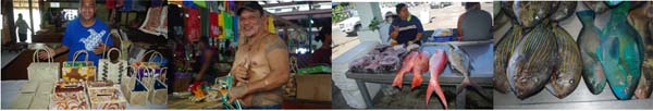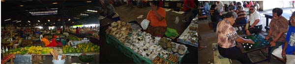 I el millor d’Apia: els seus mercats. En té 3. A línia marítima s’hi troba el Fish Market amb uns peixos d’allò més fashion … Al seu costat el Flea Market on destaquen els vistosos vestits estampats mitjançant una tècnica anomenada “siapo“, vímet, pai-pais … Aquesta badia acaba en una península on es troba el fale Fono o Parlament i les tombes reials … Per a descansar ens prenem una Vailima (cervesa local) en un bar on l’ambient és fabulós.