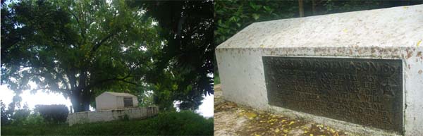 Després vam pujar fins a la seva tomba, al cim de la muntanya Vaea, a la qual s’accedeix pujant per un camí aspre i relliscós, per un paisatge que fa olor dels seus escrits: entre la jungla, els piulars, la calor, els rèptils, la humitat .. . En qualsevol moment Jhon Silver el Llarg se’ns apareixerà després d’un revolt. L’ascens són 40 minuts i és dura. Un cop a la part alta s’albira la badia d’Apia als nostres peus i ens fascinem davant aquesta simple tomba. A la placa un card i una flor de gengibre símbols de la seva Escòcia, la data: 1850-1894 i l’epitafi ja esmentat.