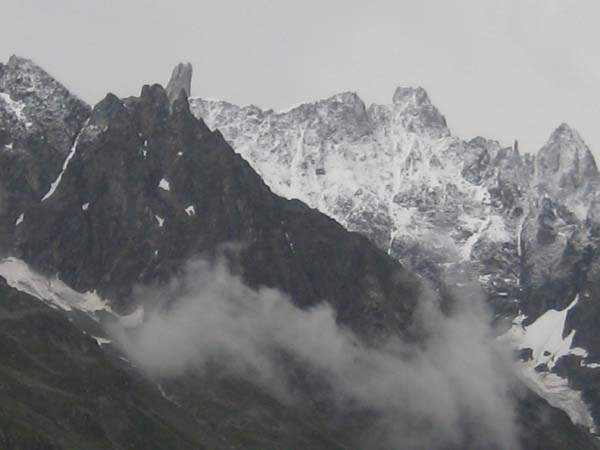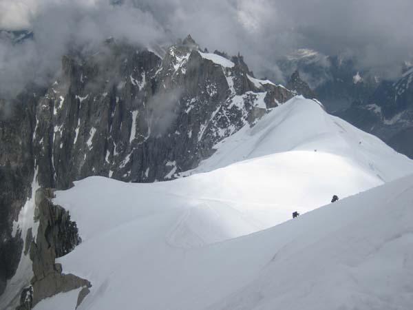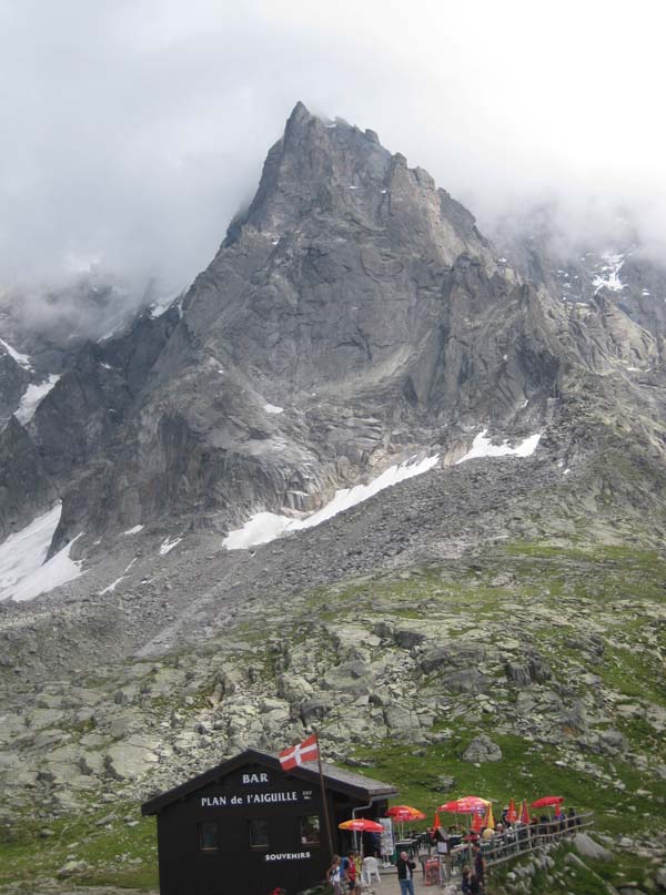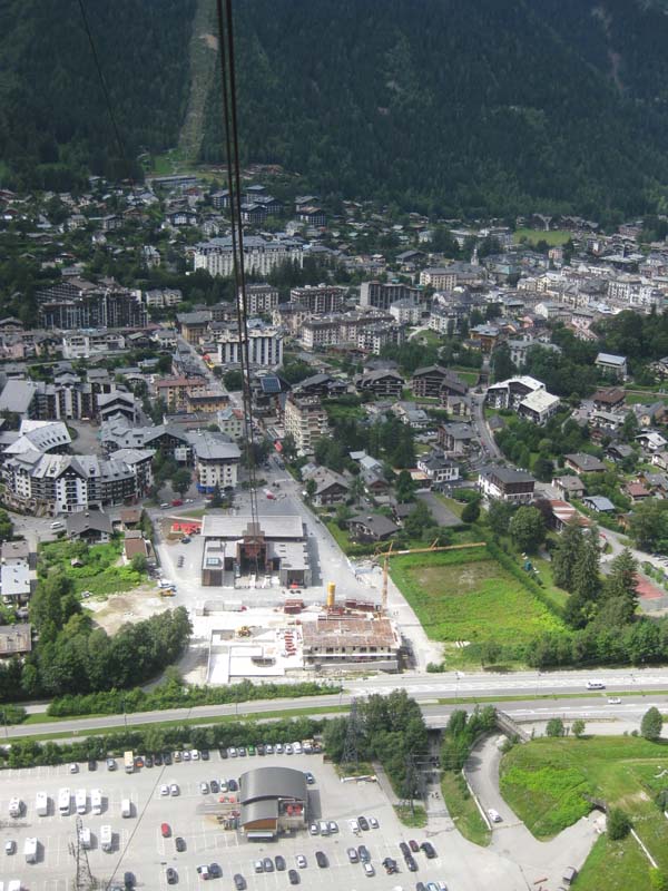 Primer havíem d’arribar a Chamonix de Mont Blanc, on havíem quedat amb dos companys. La nostra ruta s’inicià amb el vol de Palma a l’aeroport de Ginebra (Suïssa). Al mateix aeroport es pot agafar un tren o un autobús. Nosaltres optàrem pel bus, que ens havia de dur al punt de partida. Allà ens esperaven Joan i Esperança. Dinàrem i pujàrem a l’Aguille du Midi. El telefèric fa una pujada espectacular, en dos trams, el primer puja des de Chamonix (1.035 metres) al Plan de l’Aiguille (2.317 m) per sobre la vessant boscosa de la vall; el segon arriba l’Aiguille du Midi (3.842 m) superant els abruptes i rocallosos cingles. L’Aiguille és ple de miradors amb vistes espectaculars… quan hi ha visibilitat. Nosaltres trobàrem un dia boirós i ennigulat, amb visibilitat limitada, afortunadament poguérem aprofitar algunes clarianes i gaudir momentàniament de magnífiques vistes panoràmiques ( a dalt, tots ens sentírem una mica marejats per mor de l’altitud).