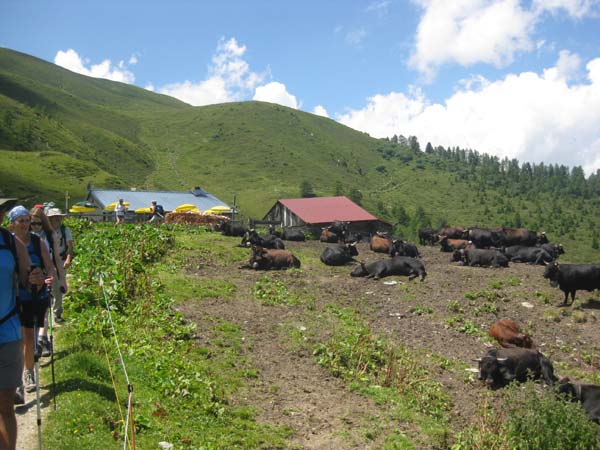 Una ràpida baixada ens dugué a La Bovine (1.987 m), una explotació ramadera en actiu amb servei de bar i habitacions. Les instal•lacions són molt rústiques però l’espai (terrassa) és molt agradós. Resultà que la cambrera era mexicana i ens explicà com funcionava l’explotació ramadera. Fet el cafetó, seguírem la ruta, ens faltàvem devers 10 quilòmetres per arribar al proper refugi.
