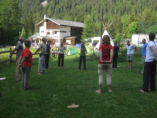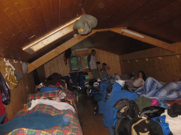 Resultà una tarda assolellada, que aprofitàrem per badar pels voltants de refugi. Abans de sopar (a les 7:00 de la tarda, vaja hores!) férem uns estiraments en grup. En aquest punt el grup ja es trobava plenament integrat. Acabat el sopar (molt de menjar i bo, en un menjador molt agradable i un servei eficient), sortírem a fer un volt (a pair el sopar) i de tornada al refugi una nineta ens convidà a comprar a una paradeta que havien muntat per a vendre llibres infantils. Els en compràrem un i ens convidaren a un te. Aprofitàrem per endegar la xerradeta i acabàrem parlant de mil i una coses amb els pares i veïnats que s’hi afegiren. Quan tornàrem a l’habitació tothom dormia. Una vegada més, els mallorquins, érem els darrers.