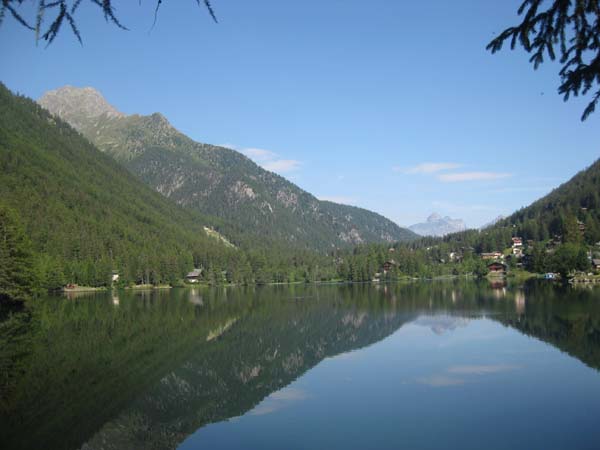 Primerament pujàrem pel mig del bosc fins arribar a la zona asfaltada que ens dugué a Champex le Lac. Vorejàrem el llac per un camí planer, per la riba dreta. Semblava que teníem certa mandra, anàvem tira-tira, aturant-nos de tant en tant (que si una foto al llac, que si una foto al grup, que si…). En travessar el llac arribàrem a una carretera, però en el primer revolt la deixàrem per agafar una drecera, cosa que férem un parell de vegades.
