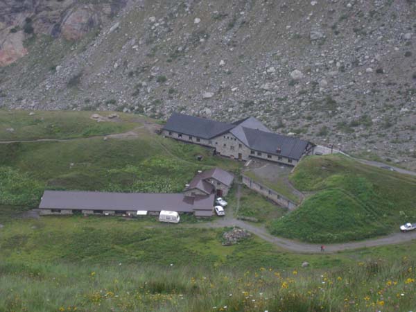 Al refugi, vell però amb unes vistes increïbles (com poguérem comprovar quan sortí el sol), s’oferiren per eixugar-nos la roba i deixàrem el calçat a una habitació, amb paper de diari dedins (al final no s’arribaren a eixugar). Aprofitàrem uns moments en què deixà de ploure i els núvols s’escamparen per veure les glaceres (La Brenva, Freney) i les muntanyes que es mostraven, des la terrassa del refugi, presentaven neu recent. Senzillament espectacular.