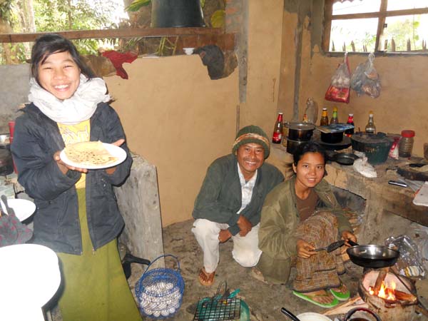 La família Tuenshui. Ens tractaren com de família. Aquesta és la seva cuina. Va ser on menjàrem millor de tot Myanmar. Fins hi tot els hi ensenyàrem a fer unes postres per acompanyar es seu vi dolç casolà. Prince hotel a Mrauk U.