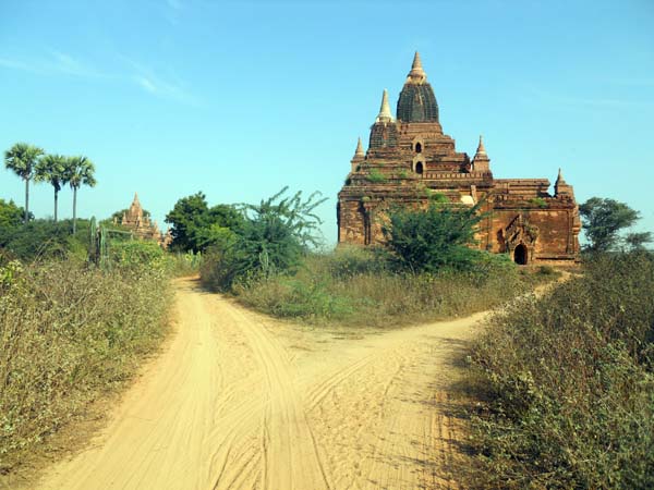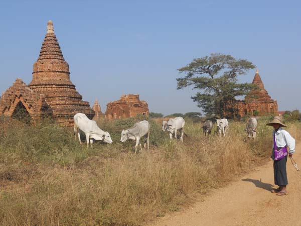 Temples de Bagan. Llogàrem dues bicicletes per a fer el recorregut. Quins colors terrosos i vermellosos! N’hi ha devers tres mil. Es mesclen estils hindús amb imatges budistes.