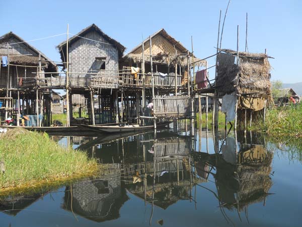 Cases dins el Llac Inle. Em va fascinar. És preciós. Tenen un jardins flotants molt ben cuidats.