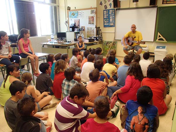 Els alumnes de 4t de s’Alzinar vam rebre la visita de Suso Rexac que va participar de la nostra festa fi de curs. Durant una estona varem cantar junts les cançons més conegudes de Suso: Aquesta terra no es seva i Passa la vida.
