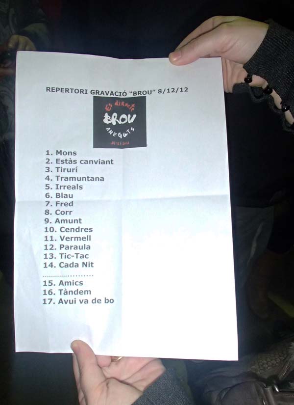 Viajar amb autobús cap a la gravació d’un disc en directe és el que va fer dissabte passat una part de la redacció de Cap Vermell. Es tractava del disc “Brou” d’Anegats, un grup que, ja amb una llarga trajectòria, volia fer un balanç dels seus anys de fer cançons amb la participació del seu públic.