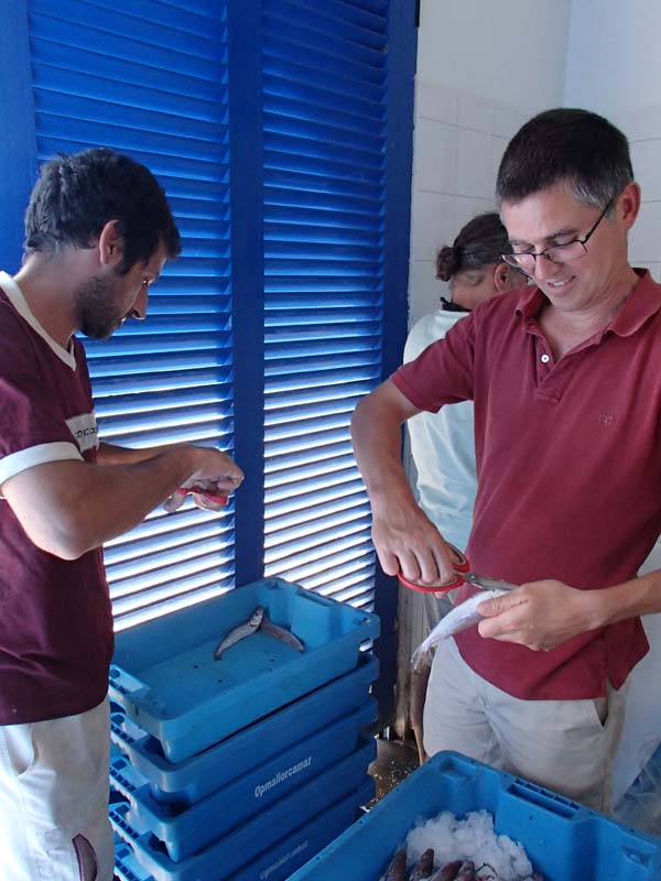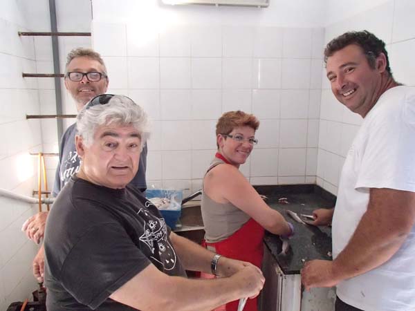 En aquestes imatges n’hem “pillat” uns quants que en lloc de fer l’horeta s’han dedicat durant dos dies a fer nets devers 160 quilos de peix. Vaja, que, per al sopar, de peix n’hi haurà a voler! I els cuiners ja preparen el senzill, però deliciós menú que podrem degustar el proper dimarts, 15 de juliol. Encara no teniu els tiquets? Idò, encara hi sou a temps!