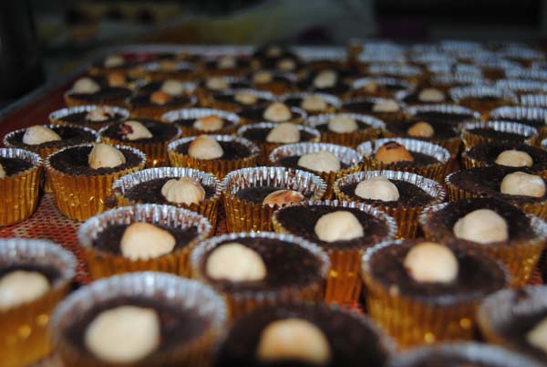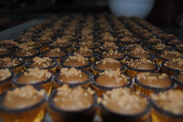 L’hem visitat mentres acabava les postres que demà podrem degustar a l’acabar l’acte dels PREMIS i hem vist petites meravelles fetes aposta per l’ocasió. El cert és que ens sentim privilegiats amb els amics que tenim. Sols pensar en l’agradable xerradeta que feim a la sortida dels Premis amb un glopet de vi i unes postres tan exquisides ens fa esperar el moment amb delit. Mirau, i no hi són totes, les castes de postres que prepara: